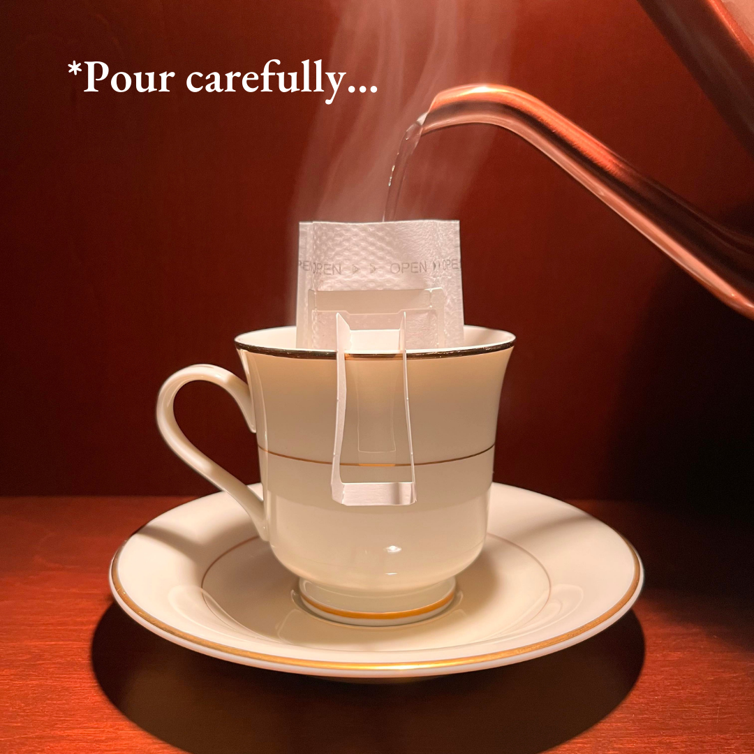 - Pick the beans of your choice! Use ground beans of your choice and still experience pouring hot water over it through empty drip filters that you can pop up in an instant.